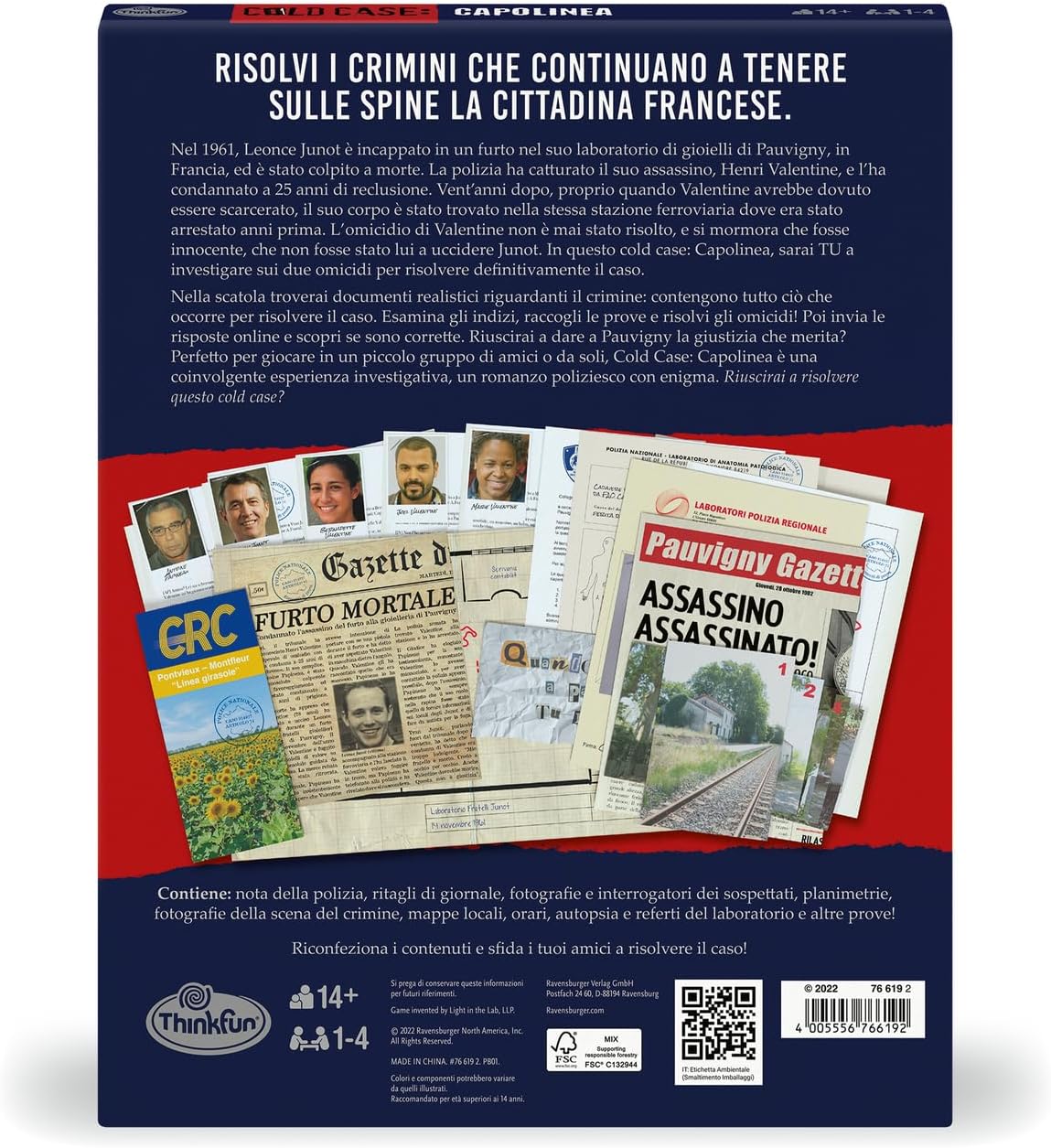 ESCAPE ROOM GIOCO DA TAVOLO: Vivi un’esperienza investigativa unica con questo gioco da tavolo in stile escape room, dove dovrai risolvere due omicidi legati a un misterioso furto di gioielli. GIOCO INVESTIGATIVO AVVINCENTE: Metti alla prova la tua logica e il tuo intuito in un caso da risolvere in italiano, perfetto per gli amanti dei giochi investigativi e delle trame poliziesche. ESPERIENZA IMMERSIVA: Cold Case 4 unisce il fascino dei giochi in scatola alla suspense di un escape room in formato gioco da tavolo, offrendo ore di mistero per giocatori esperti e principianti. PER AMANTI DI GIOCHI DA TAVOLO ADULTI: Ideale per serate divertenti tra amici o in famiglia, questo gioco da tavola è anche un ottimo regalo amica per chi ama risolvere enigmi e scoprire la verità. RISOLVI IL CASO: Scopri il quarto capitolo della serie Cold Case e continua a mettere alla prova le tue abilità investigative con questo caso da risolvere in italiano, tra i migliori nuovi giochi da tavolo adulti.